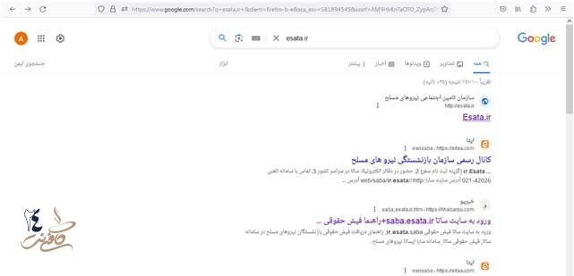 - 2 پس از این که آدرس فوق را سرچ کردید، کمی صبر کنید تا گوگل نتیجه جست و جویتان را نمایش دهد. اولین سامانه بالا آمده در لیست گوگل با همین نشانی و عنوان، مربوط به سامانه فیش حقوقی نیروهای مسلح است. پس بر روی آن کلیک نموده و وارد شوید.